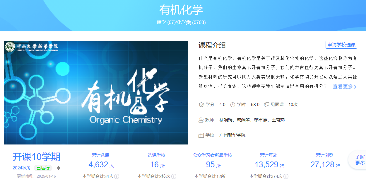 智慧树平台《有机化学》省级在线开放课程