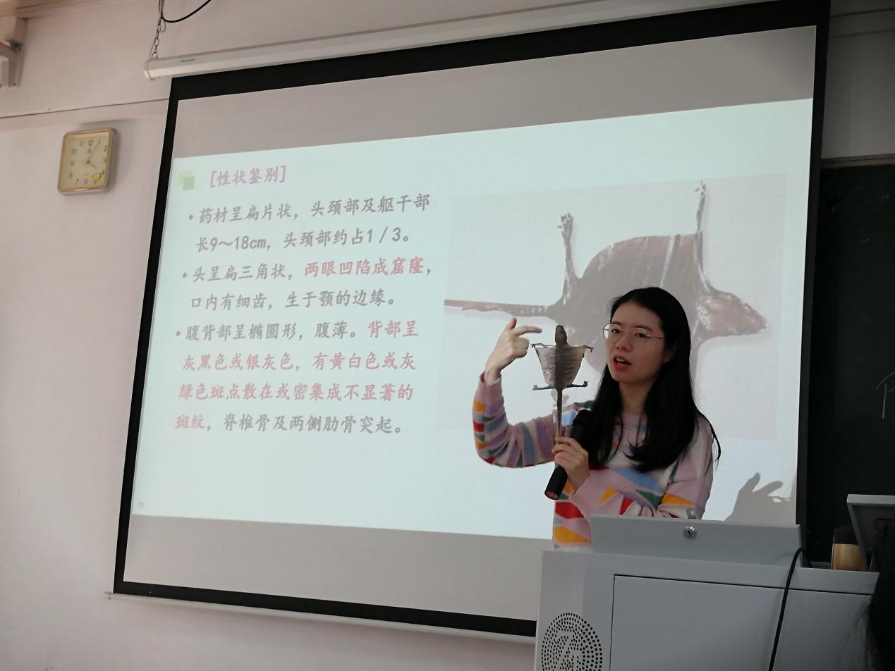 《生药学》是药学专业必修课程,是应用植物学、植物化学、药物分析学、药理学及本草学等学科理论知识和现代技术研究生药的鉴定、采收加工、活性成分、药理作用、品质评价及资源利用等问题的科学。《生药学》依据药学专业人才培养方案,依托课程知识传授为载体,对学生进行能力培养和价值塑造,培养“具创新精神,强实践能力,思想品格优”的应用型药学专业人才,确立了从扎实生药学基础、掌握生药质量评价技能、形成职业道德素养到德智体美劳全面发展的层层递进的课程目标。课程注重实践技能的培养,通过数码互动平台、校内外药用植物园、社区中药知识科普活动实现理论实践一体化教学,从中药文化层面进行引领,以中医药“传承精华、守正创新”的思想切入课程思政教育,是有“中国温度”的特色课程。