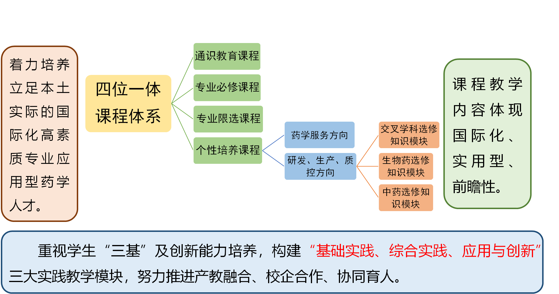 自创办以来始终坚持以培养应用型药学专业人才为主线,强化实践能力培养,在新医科建设背景下,继续加大实验实践课程比重,选修课程模块化,增设医学类选修课、临床药学类应用型课程以及综合性实验课程项目等,主动适应新医科建设的要求,努力为湾区培养服务大健康领域的高素质应用型药学专业人才。