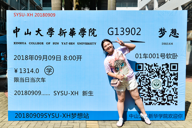 我校历来重视新生入学工作,今年更是在迎新创意方面下足了功夫。走进校门,巨幅中大新华号梦想火车票便映入眼帘,象征着列车由“中山大学新华学院开往梦想的彼岸”,票价是1314(一生一世,寓意挚爱一生)。还有,中山大学新华学院官微“朋友圈”展示板、大型录取通知书、更新版两校区手绘卡通地图等,成为了今年新生和家长的“必备打卡点”。