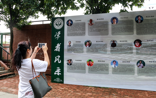 在报到处,各院(系)风采展示栏、学者风采展示栏、教学督导队伍风采展板吸引了大批新生及家长们驻足观看,在了解了我校的办学特色、专业介绍、师资情况后,家长蔡先生认为我校雄厚的师资力量和优质的教学质量让他感到非常放心,他为孩子能够在中山大学新华学院度过大学生涯感到十分安心。