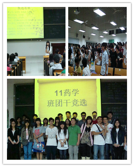 2011年10月18日星期二晚上7:00 , 药学系11级183名同学在D栋101教室举行第一届班团干竞选大会,出席此次竞选大会的嘉宾有11级级导师关冠恒、11级辅导员丁琼以及10级部分班干。