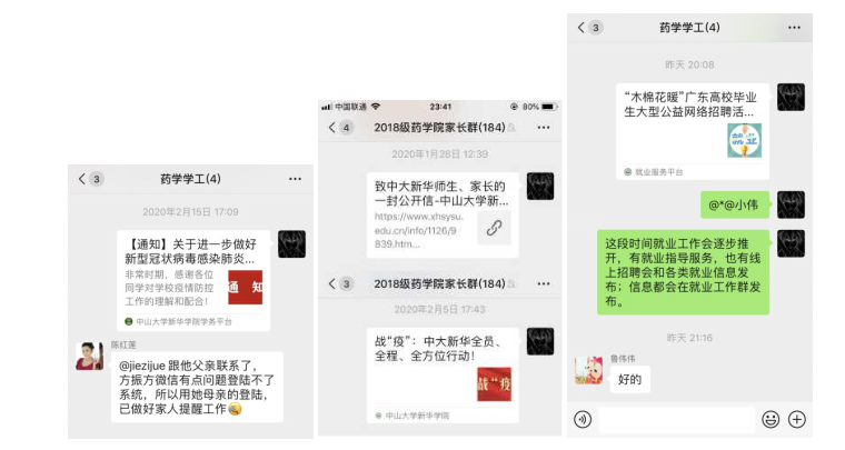 辅导员与学生家长及时沟通信息,毕业班辅导员提供在线就业指导服务