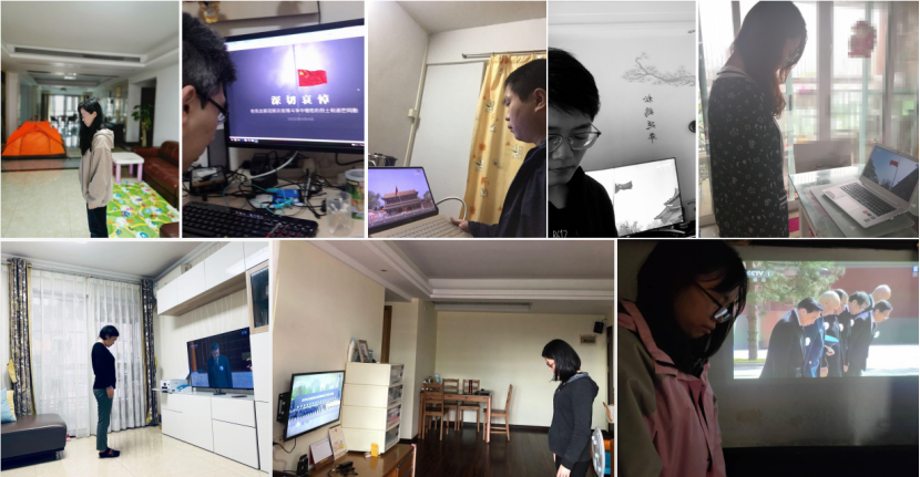 药学院教职工居家为抗击新冠肺炎疫情牺牲烈士和逝世同胞默哀(图片由各教职工本人提供)