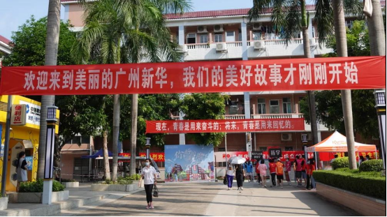 “筑梦广州新华 书写无悔青春”“中国需要清华 中国也需要新华”“德才兼备 知行合一”“千里之行 始于新华”……校门外,巨幅空飘为新生送上了第一份“见面礼”;校园内,学校以精心设计的迎新展板、横幅海报,极具创意的合影卡牌,通往中国梦的高铁票、录取通知书展板为初入大学校园的萌新们增添了满满的仪式感。校道两侧的大型展板,向新生们展示了学校雄厚的师资力量,院系风采尽数道出学校的学科优势和丰富的校园文化。身着黄色马甲的校园记者在校园内热情地为新生拍照,将第一次的见面定格成永恒。