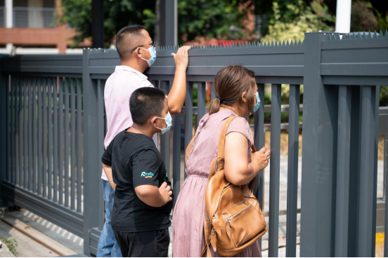 根据疫情防控有关规定,新生报到时谢绝家长陪同入校,家长们纷纷在校门外驻足送别新生。王庭槐校长在校门处迎接新生并与新生家长热情交谈:“家长您好,你们从哪里来呀?辛苦了,请放心把孩子交给学校”。“学校各项措施都很到位,孩子在新华求学,我们很放心”。家长对学校的防疫期间采取的措施表示理解,希望孩子在太阳成集团tyc33455接受教育和熏陶,成长、成人、成才。