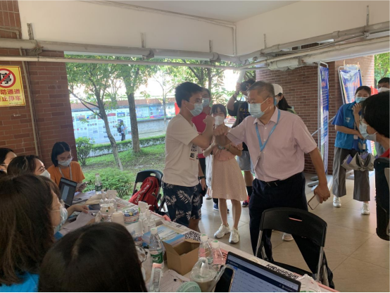 我校迎新工作的顺利开展离不开属地政府和疾控、安保、交通等部门的大力支持。新生报到期间,麻涌镇卫健局和疾控中心工作人员、专业医护人员进驻校园,协助我校开展对进校学生的核酸检测工作“应检尽检、不漏一人”;公安人员在校内设立执勤点,向新生宣传防诈骗知识,为建设平安校园保驾护航。