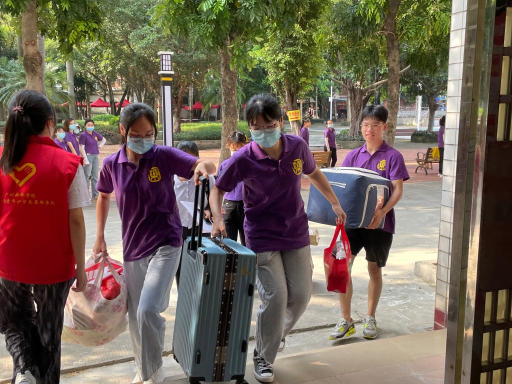 药学院志愿者帮新生搬运行李