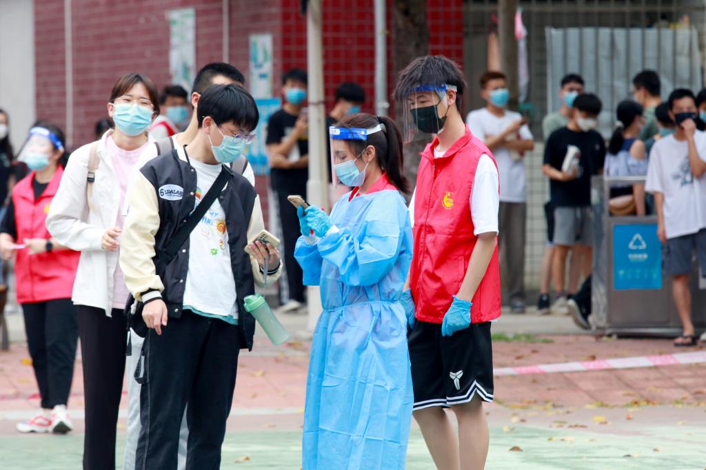 各院系,职能部门还在全员核酸检测点设置了工作区,及时处理检测过程中遇到的各类问题。