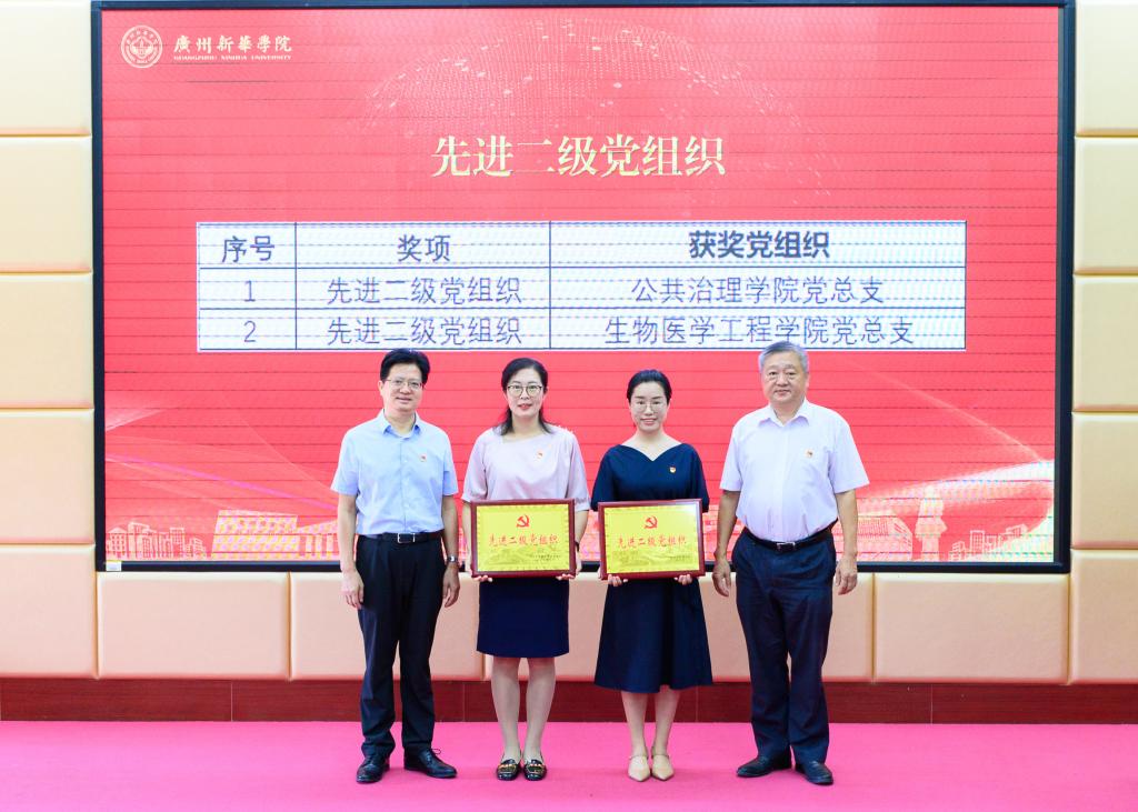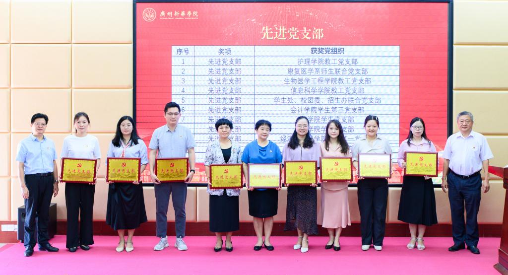 郝登峰书记、王庭槐校长为“先进二级党组织”颁奖并合影留念
