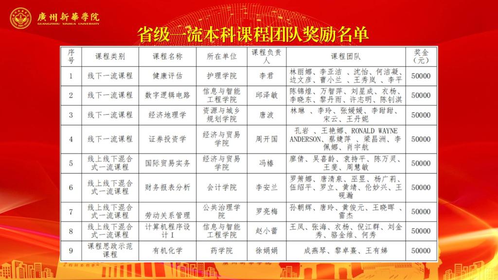省级一流本科课程团队奖励名单