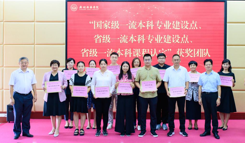 王庭槐校长、郝登峰书记为“国家级一流本科专业建设点”“省级一流本科专业建设点”“省级一流本科课程”获奖团队颁奖并合影留念