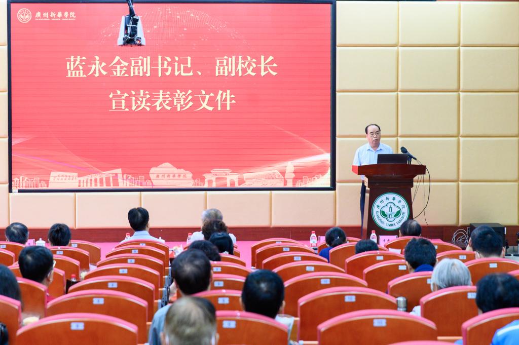 我校副书记、副校长蓝永金宣读系列表彰决定