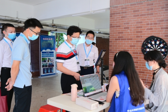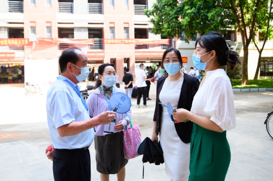 我校副校长、党委副书记蓝永金(左一),校长助理郑穗芬(左二)在迎新现场指导工作
