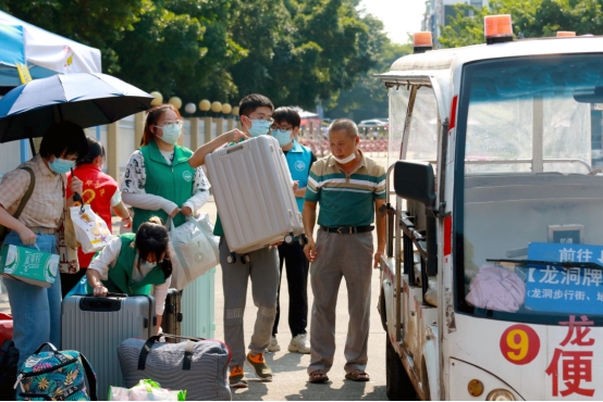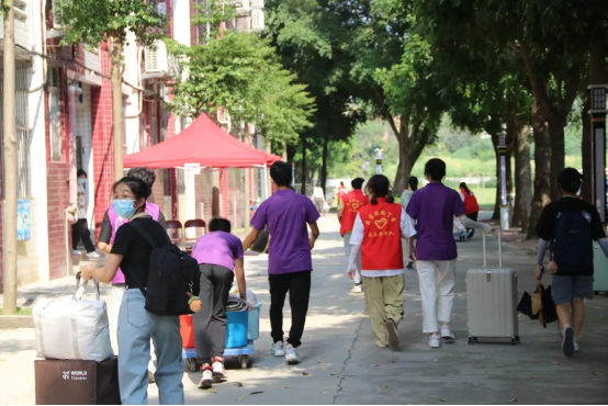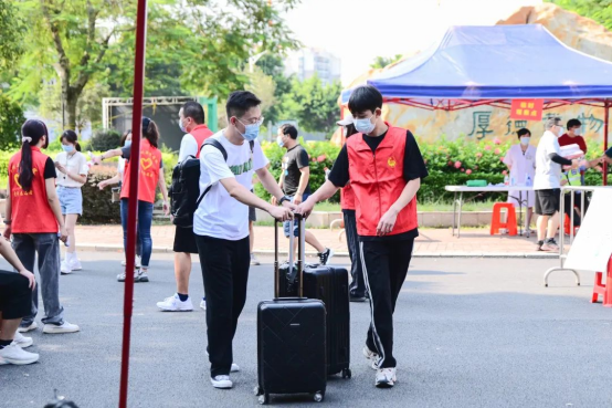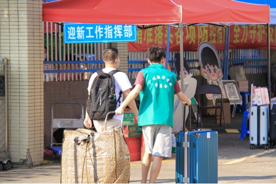 在迎新工作正式开始前,我们就做好了充足的准备。迎新当天,我们按计划在现场有序地开展工作,指引新生进行报到,为他们搬运行李,带领他们办理住宿手续等等。在这个过程中,令我印象最深刻的是家长与孩子们依依不舍告别的场景。出于疫情防控的原因,新生家长们无法进入学校,这时,作为迎新志愿者的我们便担负起了“临时家长”的责任,帮助新生们顺利完成开学第一关。这次的经历也让我回想起了当初我作为新生刚入学时的场景:负责迎新的学长学姐非常热情地迎接我,耐心地解答我的问题,消除了我的陌生感和紧张感,让我感受到了新华的温暖。因此,我也想把这份温暖继续传递下去,帮助小萌新们更好地适应大学生活。