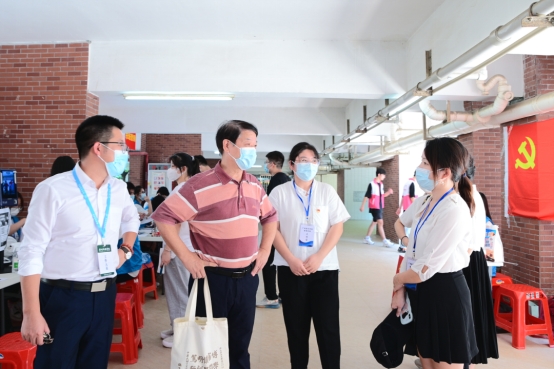 我校党委书记郝登峰(左三)在迎新现场指导工作