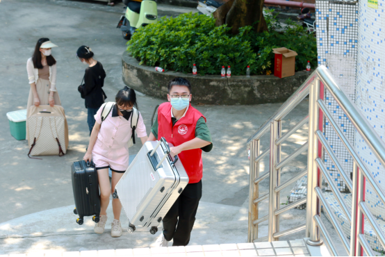 迎新期间,志愿者们在接站点、校门口、报到点、食堂等处提供指引和帮助,帮助新同学迅速熟悉校园,适应大学生活。他们耐心地为新生解答各种问题,不辞劳苦地一趟趟帮助新生搬运行李,细心叮嘱各项防疫政策,并一路将各位新生送至宿舍办理入住。热情周到的服务很快消除了新生们初来乍到的陌生感,感受到了广州新华大家庭的温暖。