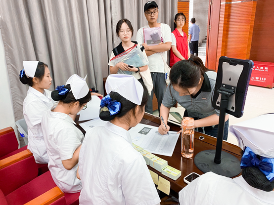 护理学院志愿者身着“护士服”,以昂扬专业的面貌迎接新同学
