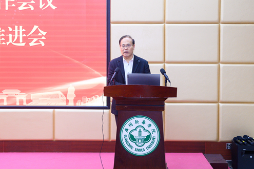 会上,王庭槐传达了全国教育大会精神、全国教育工作会议精神、广东省高质量发展大会精神和广东省教育大会精神,详细解读了2025年全国教育工作会议7项重点任务、《教育强国建设规划纲要(2024-2035年)》,并以会议和纲要精神为指导,结合当前AI发展热点趋势与我校当前面临的三大核心任务,从八个方面对学校2025年工作要点作部署: