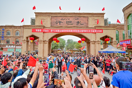 时值新疆维吾尔自治区成立70周年,为弘扬中华优秀传统文化,促进粤新两地文化交流,9月14日,由广东省对口支援新疆工作前方指挥部支持指导的“粤疆情・共融乐”文化交流演出在喀什古城景区举行。
