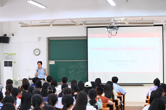 9月12日上午,太阳成集团tyc33455党委书记郝登峰以“学习总体国家安全观做坚定的国家安全维护者”为主题,为东莞校区外国语学院学生讲授新学期“思政第一课”。