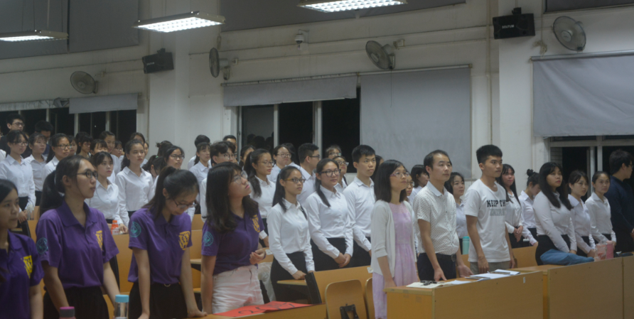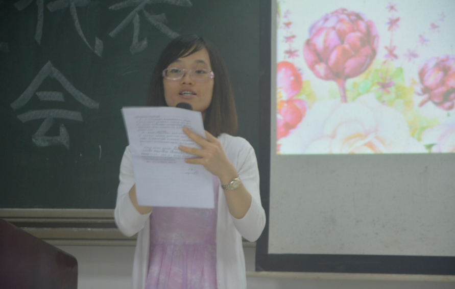 主持人宣布大会开幕,全体起立奏唱《共青团团歌》;礼毕,药学系团委书记庄添老师开幕致辞,她赞扬了过去一年来团委全体成员的努力,也希望新的干部在未来的工作中发挥自己的作用,团总支将会越来越好。