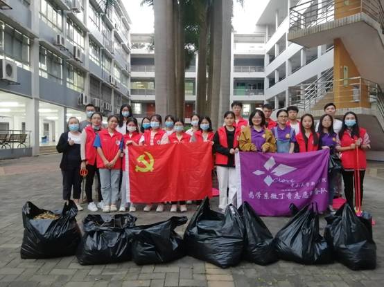 “窗外云卷云舒,开门前花开花落”,校园环境是一个学校的窗口,直观地反映了学校的精神风貌,体现了学校的文化氛围。洁净、舒适、安全的校园环境不仅是我们学习生活的需要,而且是陶冶情操的需要,营造优良的校园环境是我们每个人的神圣职责。为了给同学们创造良好的校园环境,药学院微丁香志愿服务队于2020年11月12日下午举办了美化校园志愿活动。主要参加人员包括药学院党总支副书记陶强老师、药学院学生党支部书记鲁伟伟老师、药学院团委副书记黎晓媚老师、19级药学辅导员陈红莲老师、药学院预备党员及药学院的志愿者。
