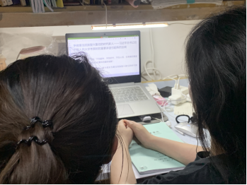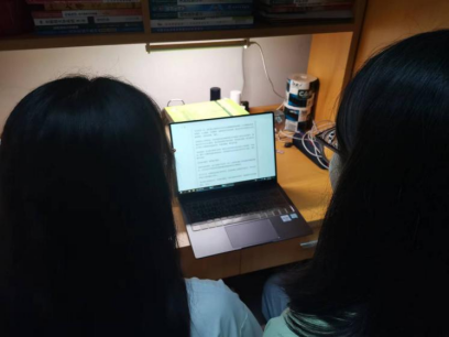 黄思琪、莫珊珊同志在阅读《深入学习贯彻习近平总书记在中国人民大学考察时重要讲话精神》