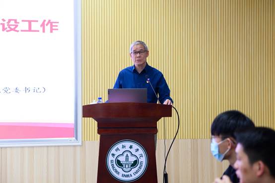 为深入贯彻落实习近平新时代中国特色社会主义思想和党的二十大精神,履行为党育人、为国育才职责使命,全面落实立德树人根本任务,推动我校党建质量全面创优、全面提升,3月9日,我校举办“加强民办高校新时代基层组织党建示范创建和质量创优工作”专题讲座,特邀广东高校党建研究会学术委员会委员、广东省民办高校党建研究会副会长易钢教授为党务骨干作“精准对标,突出特色,做好党建“双创”申报与建设工作”专题培训。各二级党组织书记、副书记、委员,党支部书记,党委各职能部门全体人员参会学习。会议由我校党委书记郝登峰研究员主持。