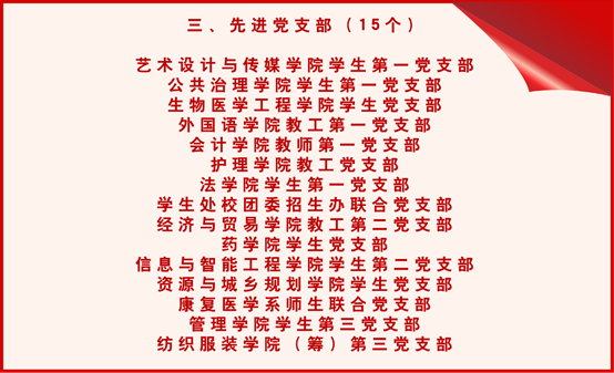 校党委书记郝登峰、监事会监事长蓝永金、监事会副监事长李中生、副校长李毅、纪委书记林源、财务总监吴赛金等学校领导出席大会,学校两委委员、党群系统各部门负责人、各二级党组织负责人、受表彰人员及师生党员代表等120余人参加大会。大会由党委副书记、校长王庭槐主持。