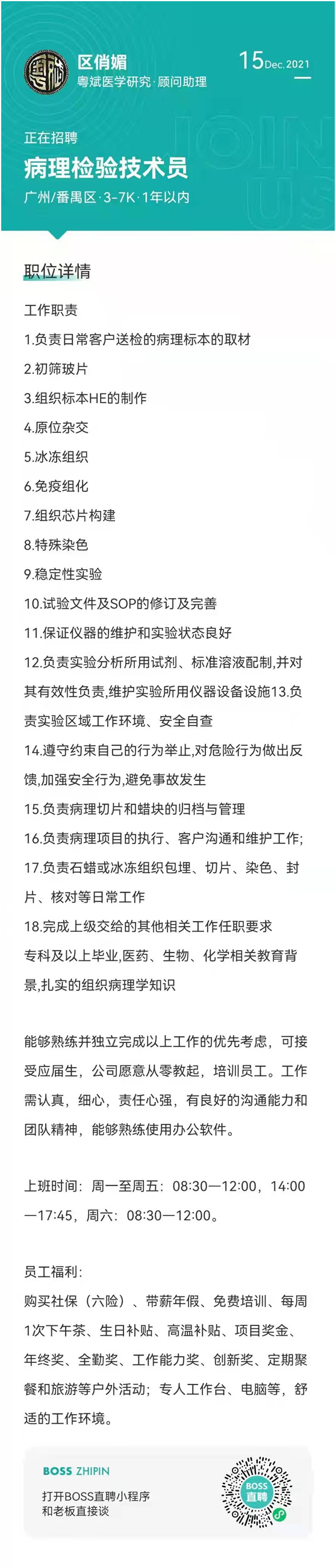 【转】粤斌医学研究有限公司招聘信息