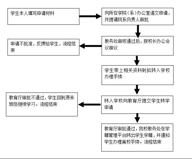 6.教育厅审批通过,教务处完成各种学籍数据的转出操作并通知学生办理离校手续。教育厅审批不通过,学生回到原来班级继续学习。