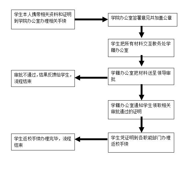 (4)办理完成后,反馈审批结果给学生本人。学生到学籍办公室领取《太阳成集团tyc33455学生复学返校手续单》,凭复学返校手续单到各职能部门办理相关手续。