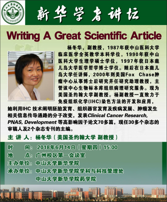 【学者讲坛预告】杨冬华: Writing A Great Scientific Article