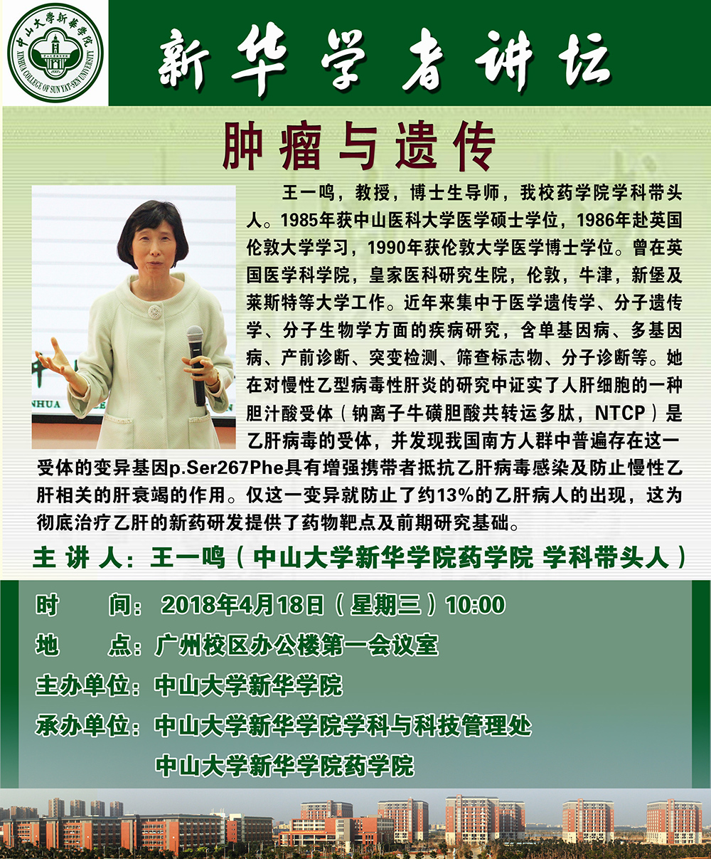 【学者讲坛预告】王一鸣:肿瘤与遗传