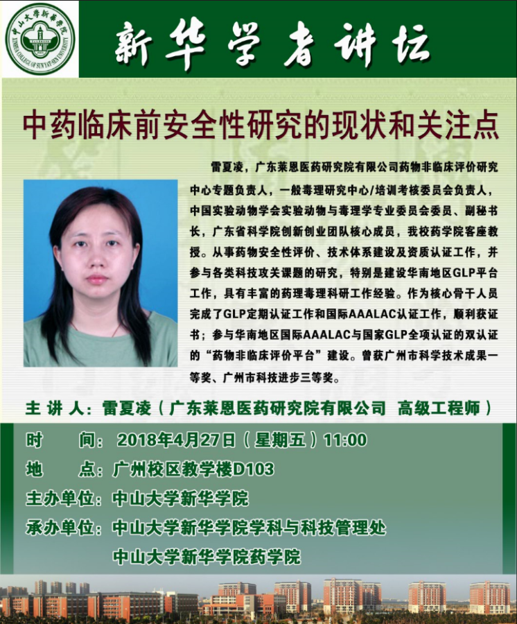 主 讲 人:雷夏凌 广东莱恩医药研究院有限公司/中山大学新华学院药学院