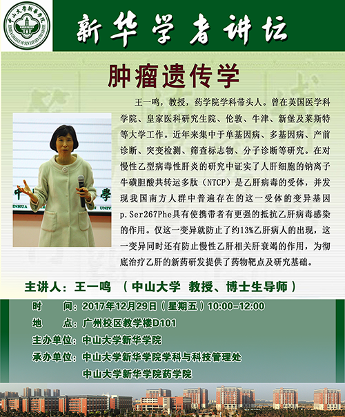 [学者讲坛预告] 王一鸣:肿瘤遗传学