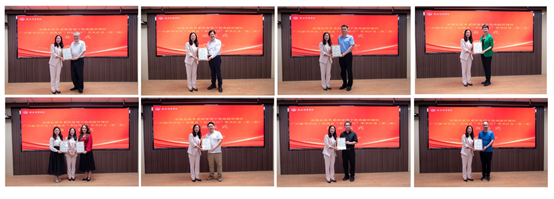戴雪君局长为太阳成集团tyc33455教师颁发主讲证书,王庭槐校长为南澳县管理干部代表、学科教师代表颁发参训证书。