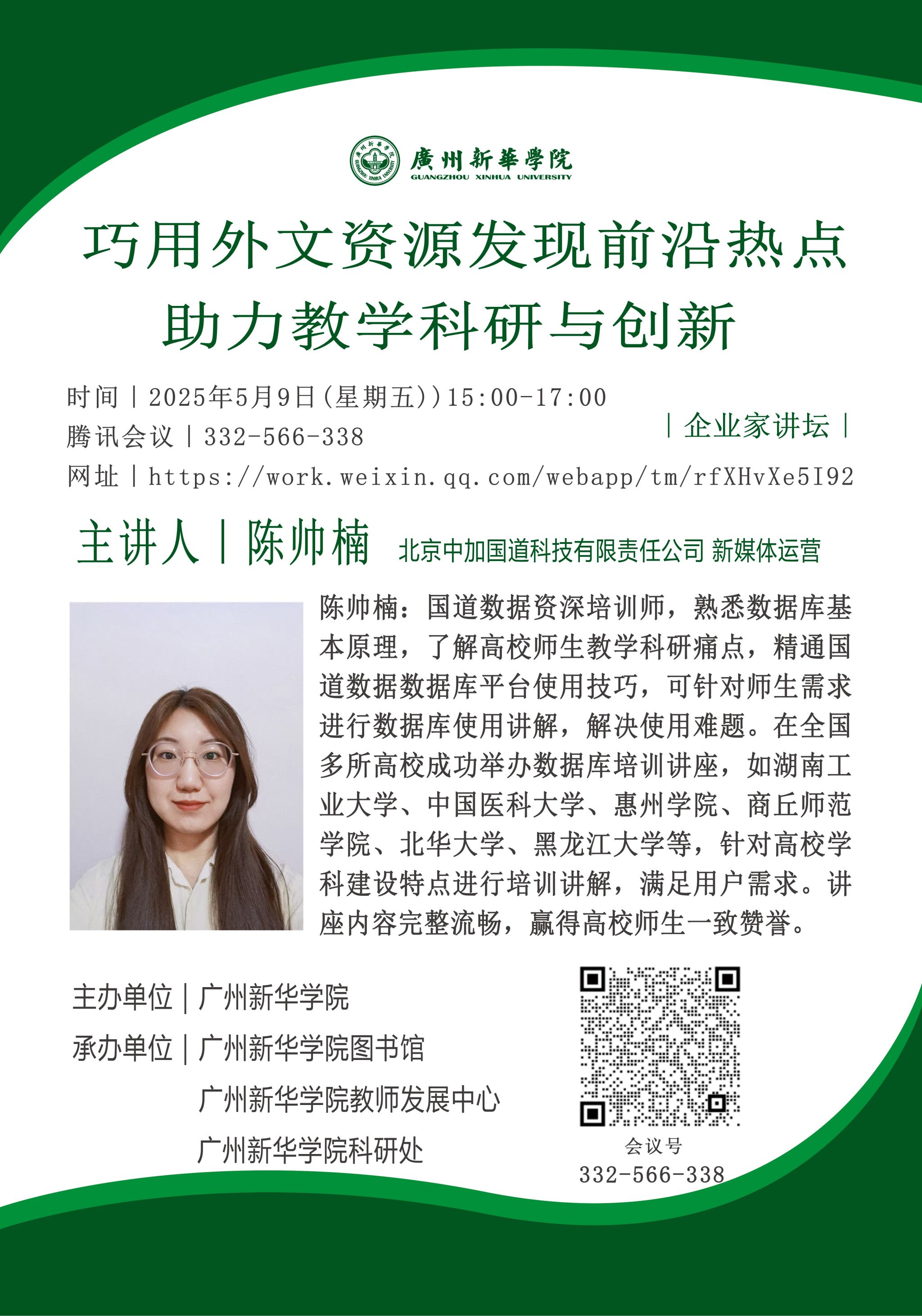 讲座主题:巧用外文资源发现前沿热点,助力教学科研与创新