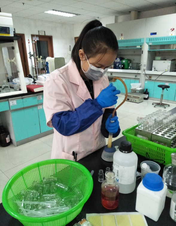 实习过程中,在带教老师和各位师兄师姐的帮助下,我从一开始不适应实验室环境、不了解各项仪器操作、不了解某些实验的具体操作细节,到现在能熟悉实验室各项仪器与试剂摆放位子;在拿到质量标准后能仔细查看,一步一步完成各检验项目;熟悉各项仪器的操作。在实验室中,我学习到了一些规范的实验操作,例如: