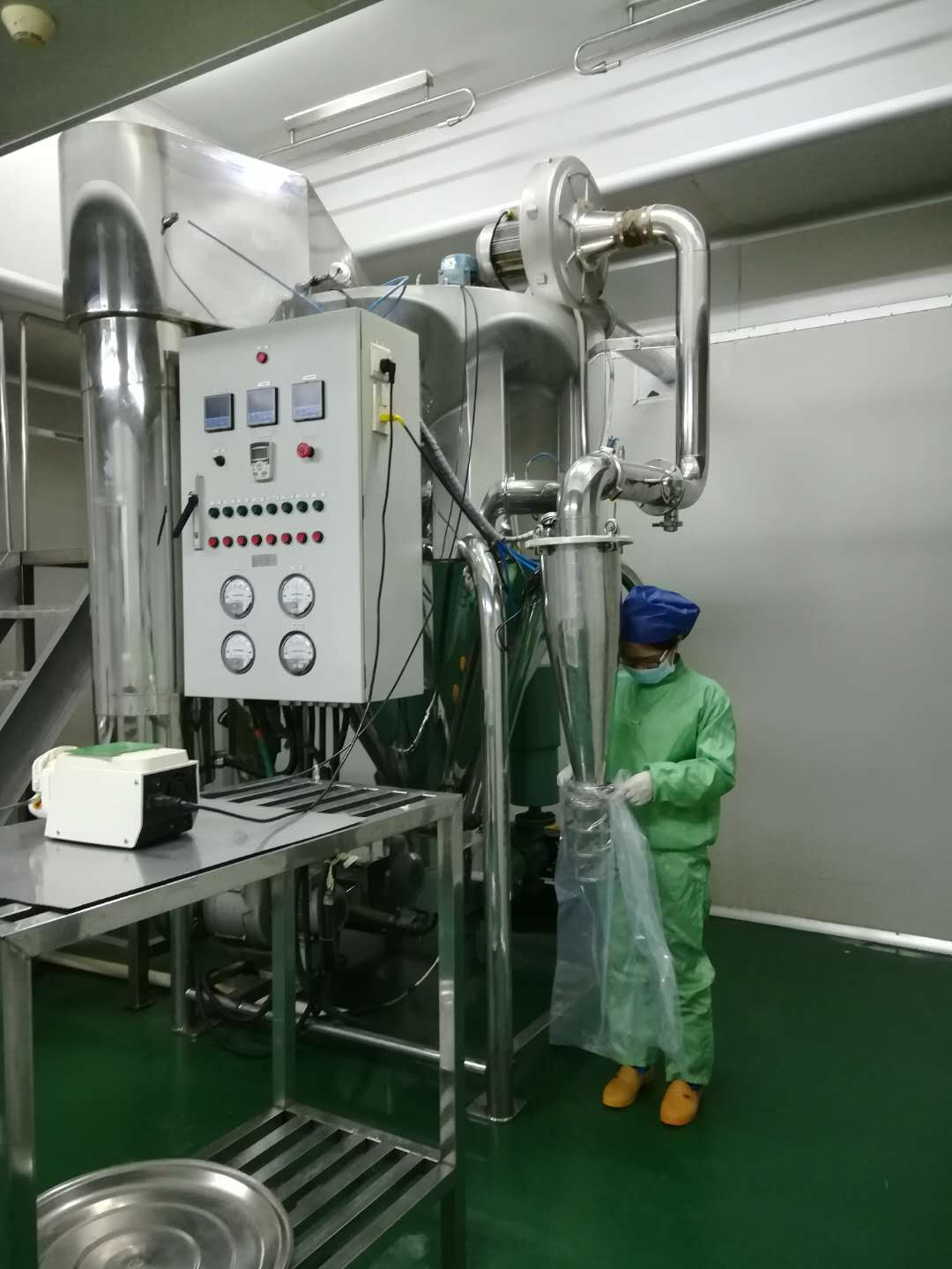 第四站—制剂室。刚到制剂室,负责人首先让我了解制剂室的厂区布局,熟悉相关原理,并给我介绍了各个房间的工艺流程。这加强了我对GMP知识和安全知识的学习,做到了理论和实际相结合。在制剂室我熟悉了喷雾干燥机的操作和药物的制备工艺流程包括丸子的制备工艺,胶囊的制备工艺。我还了解了GMP车间规范化的管理流程。我进入洁净区,对我们清洁要求很高,更换专用的工作服,套上鞋套,戴口罩,清洗双手。在制剂室的卫生不是随便擦擦就好了,有相关的要求。师兄常说在制剂室要做好两件事:一是生产,二是清洁工作。