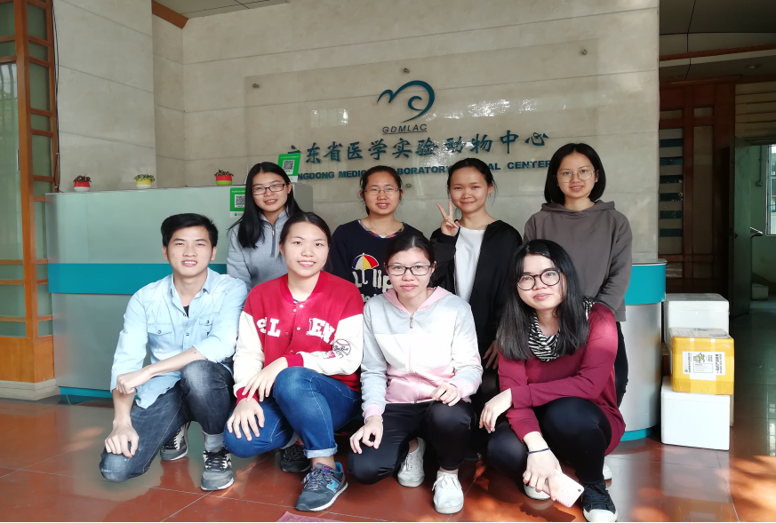 黄锐(第一排左一)在广东省医学实验动物中心实习