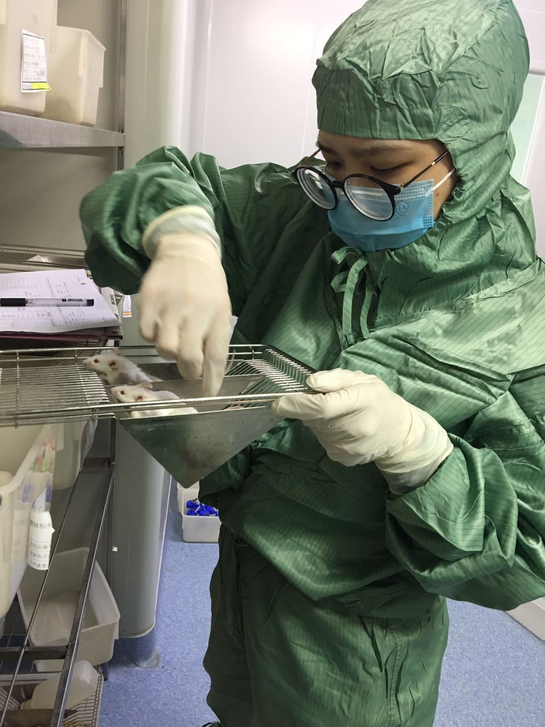 然而选择来到动物中心,让我最开心的就是开启了和动物的学习之旅。不同的实验要选择不同的实验动物,比如听力实验选择豚鼠、热原实验选择兔子等。实验动物没有宠物的可爱珍贵,可能 会觉得微不足道。而在动物中心恰恰相反,开始接触动物的第一课就是了解动物伦理。动物伦理在课堂上可能只是几句带过,而在实习单位是非常重要的,每一个实验的开展,需要根据动物伦理规范走流程,这不仅仅是流程,更重要的是对动物的尊重。我最记得就是当时的一句话“每次实验结束就要尽快结束动物的生命,减少痛苦。”我刚开始学习的时候没有很在意,但是开始接触动物实验的时候才知道这句话的意义。记得有一个关于肝损伤的实验,在灌入酒精之后,小鼠由刚开始的健康状态变成体重减轻,精神不佳。这时候我才意识到了这句话的重要性,它们一直承受疾病的疼痛,它们是生命,也是有血有肉,为科学进步承受痛苦,已经是一件伟大的事情,而减少痛苦,结束生命是我们人类为它们能做的最大努力。这样我才了解到的实验动物伦理的重要性,它是底线,是我们该遵守的规矩。所以生活中要学会怀有感恩,不是所有的事情都是理所当然,做什么都需要心存敬畏和感恩。