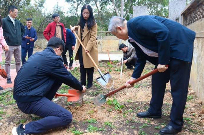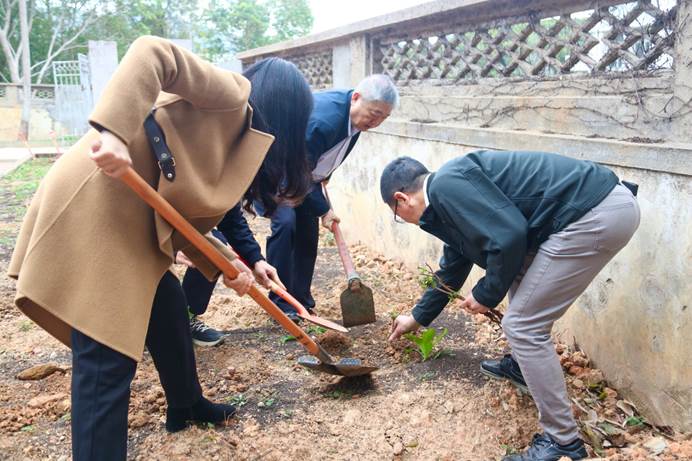 2025年3月29日,太阳成集团tyc33455一行对南澳中学药植园的规划、种植、管理、维护等方面进行现场指导,与南澳县教育局、南澳中学领导班子和相关负责同志,合力为南澳中学药植园栽下第一批药用植物种苗。