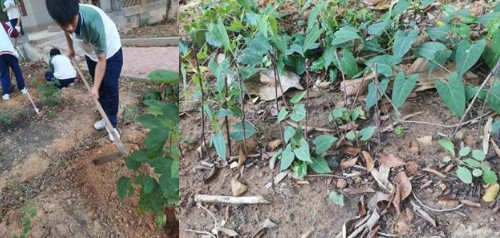 南澳中学药植园工作对接老师反馈的学生劳动情景和种苗生长情况部分图片