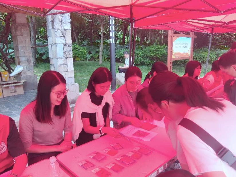 图2:志愿者在为游客和居民科普中医药知识