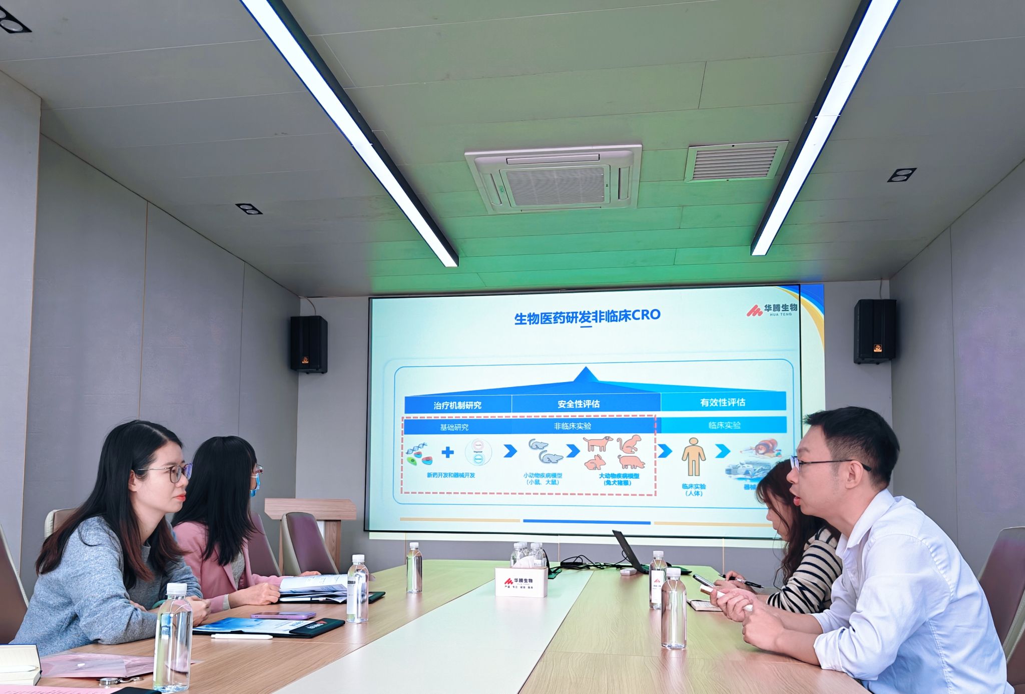 会后,华腾生物人事主管带领我院一行人员,参观了公司的动物实验研发中心等实验室,并详细介绍了公司动物实验技术服务及科教培训等方面的先进设施与运营经验。