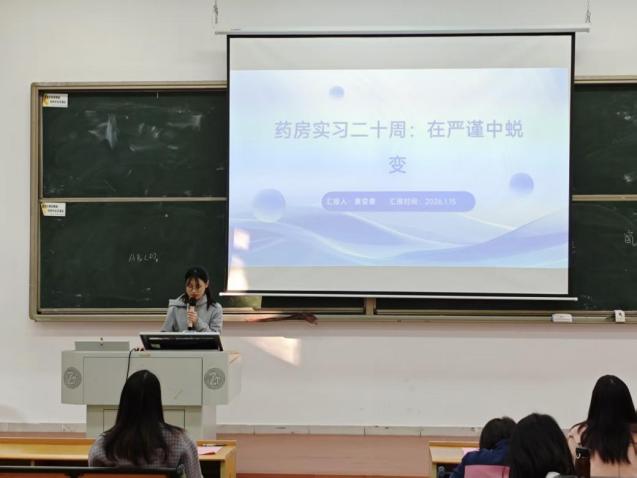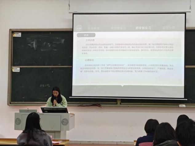 优秀实习生代表结合各自在医院、药企等不同单位的实习经历,生动介绍了在中心药房、静配中心、中西药房、药检室、制剂室、药库等岗位的实践内容,涵盖处方审核与调配、静脉药物配置、药品发放、库存管理、质量检验及实验操作等核心业务。他们一致强调,药学工作必须严格遵守操作规程与安全规范,始终秉持严谨、细致、负责的职业态度。