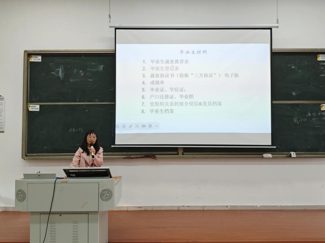 会议最后,由辅导员庄添老师主持召开毕业班主题班会,她希望大家以严谨负责的态度走好毕业“最后一公里”,在求职或升学的征程中稳扎稳打、顺遂如意,既能守住当下的节奏,亦能奔赴理想的远方,带着大学四年积淀的知识、能力与热爱,在人生新阶段自信启航,熠熠生辉,前程璀璨!