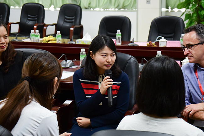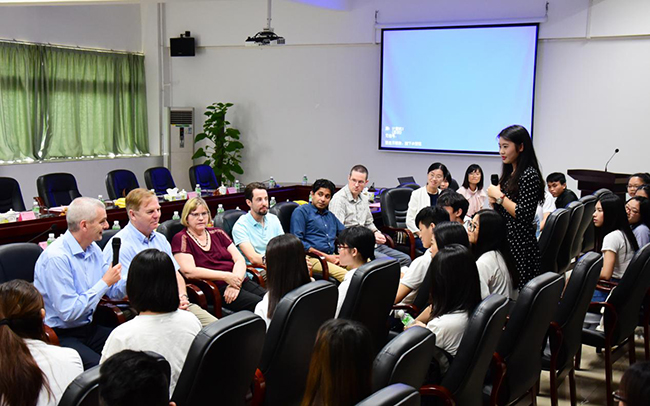 16级陈娴同学在交流过程中向Prof.Neale Cohen提问:因为基因疗法是针对疾病的根源而不是症状来治疗疾病的,是否运用基因治疗技术在1型糖尿病模型体内实现胰岛再生从而有希望完全治愈1型糖尿病?